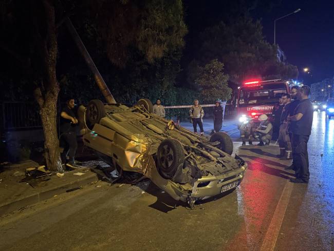 Otomobil önce bir ağaca çarptı, ardından yol kenarındaki elektrik direğine çarparak takla attı.