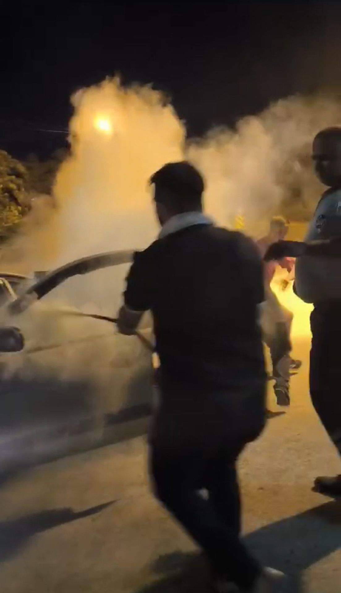 Bu sırada Karanlıkbulut, güvenlik kulübesindeki yangın söndürme tüpünü alıp, grubun üzerine gaz sıktı. Kulübeden dışarıya çıkan grup, otomobile binerek uzaklaştı. O anlar cep telefonu kamerasına yansıdı.