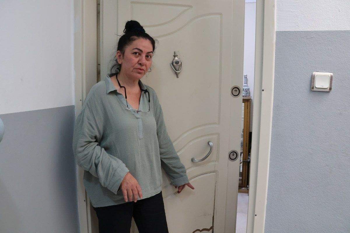Kapının önünde bulunan demir ayakkabılığı kıran, kapıyı tekmeleyip yumruklayan saldırgan ev sahibi, “3 gün mühlet veriyorum, evi boşaltın” diye bağırarak kiracısına tehditler savurmuş, kendisini eve kilitleyen kiracı Arzu A. ise çaresizce ev sahibinin kapısından gitmesini beklemişti.