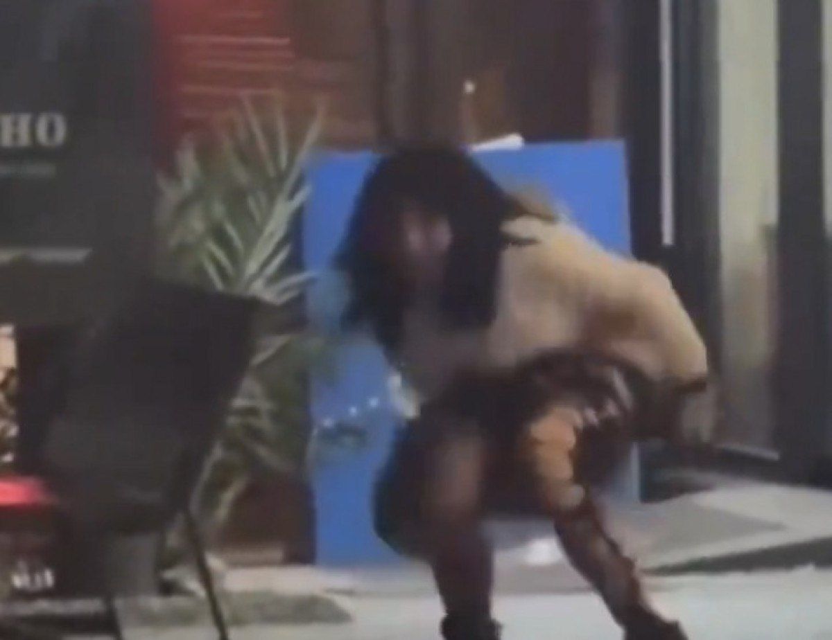 Ardından ise çevresinde bulunanlara aldırış etmeden, eteğini indirdi ve tuvaletini yaptı.