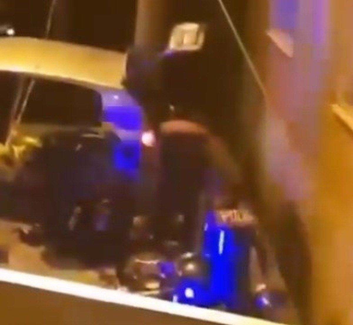 Ağlayarak polisten yardım isteyen şüphelinin o anları ise çevredeki bir vatandaş tarafından cep telefonu kamerasıyla kayda alındı.