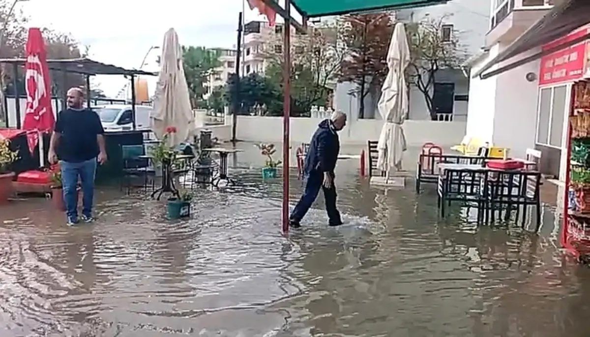 Meteoroloji İzmir Bölge Müdürlüğü’nün dün yaptığı yağış uyarısı üzerine beklenen yağmur öğleye doğru kıyı ilçelerinde etkisini göstermeye başladı. Foça’da şiddetini artıran yağış hayatı olumsuz etkilerken, Aliağa ilçesinde de sağanak yağmur su baskınlarına neden oldu. Şiddetli yağış bazı bölgeleri göle çevirdi. Vatandaşlar kapalı alanlara sığınırken, bazı ev ve iş yerlerini su bastı.