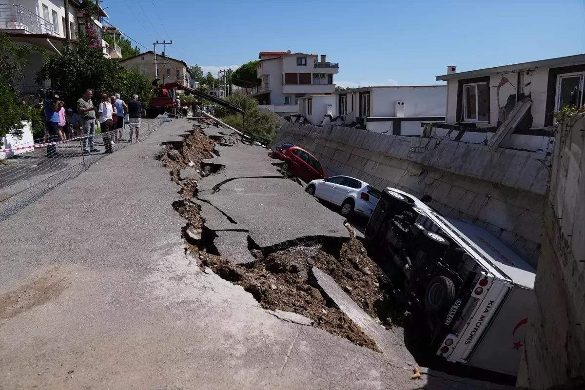 Ahmetbeyli Mahallesi’nde ise derenin taşması sonucu Maydonoz Koyu’ndaki yolun bir bölümü çöktü. Yolda park halindeki otomobillerden biri ile koyda bağlı olan teknelerden bazıları denize sürüklendi.