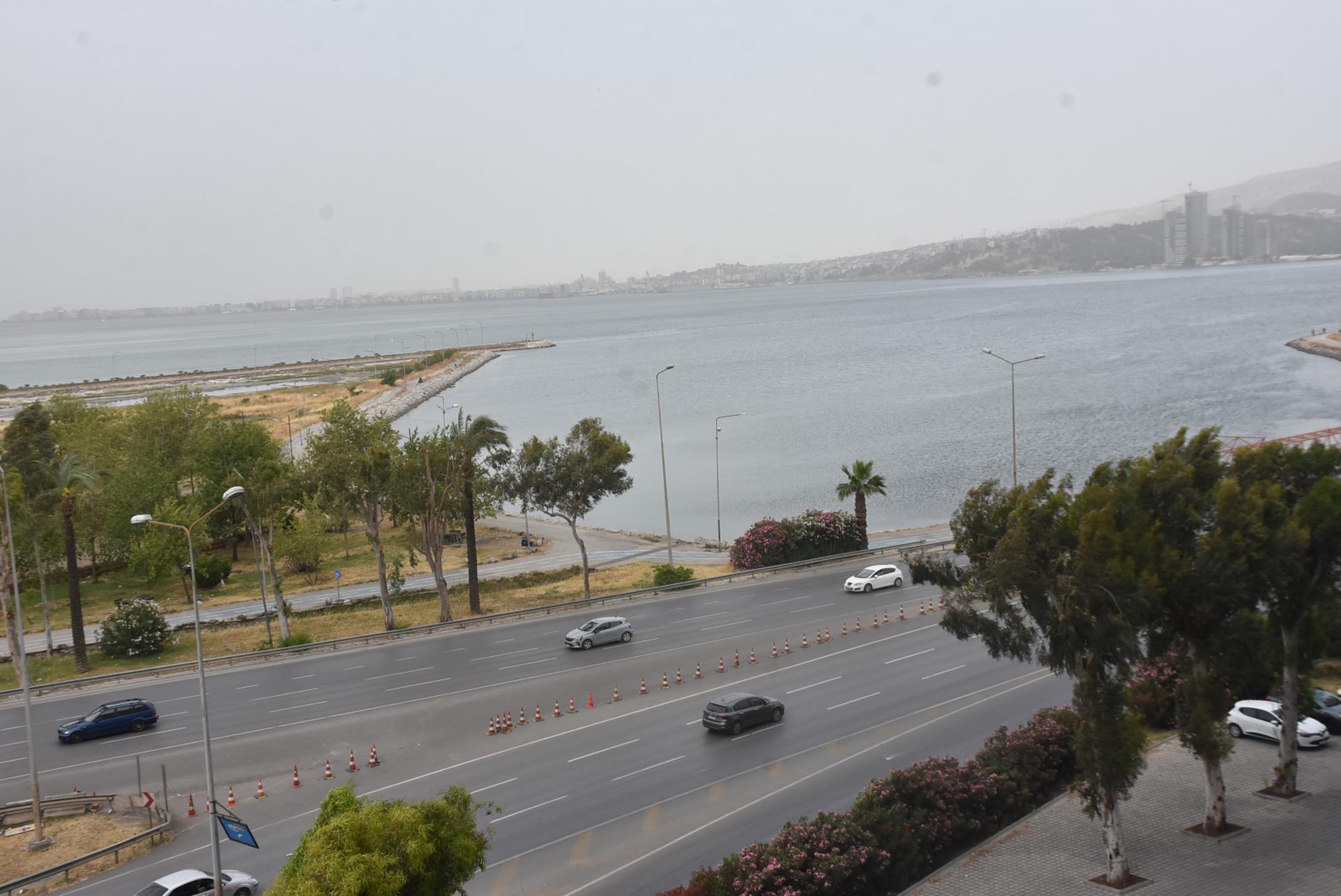 Meteoroloji Genel Müdürlüğü’nün uyarısının ardından İzmir’de toz taşınımı görüldü. Hava kalitesi düşerken, görüş mesafesi de azaldı.