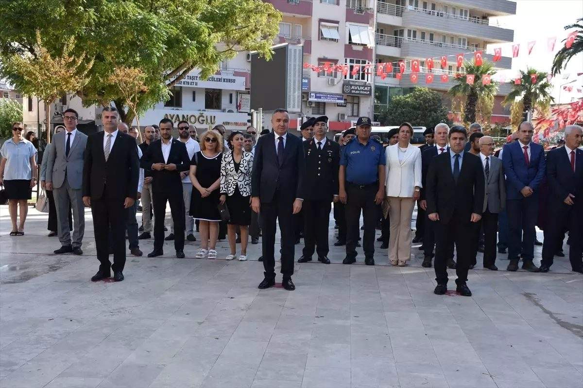 Atatürk Anıtı önünde düzenlenen törene, Kaymakam Musa Sarı, Belediye Başkan Vekili Nejat Özden, Cumhuriyet Başsavcısı Bahadır Bilen, daire amirleri, siyasi parti ve sivil toplum kuruluşları temsilcileri ile vatandaşlar katıldı.