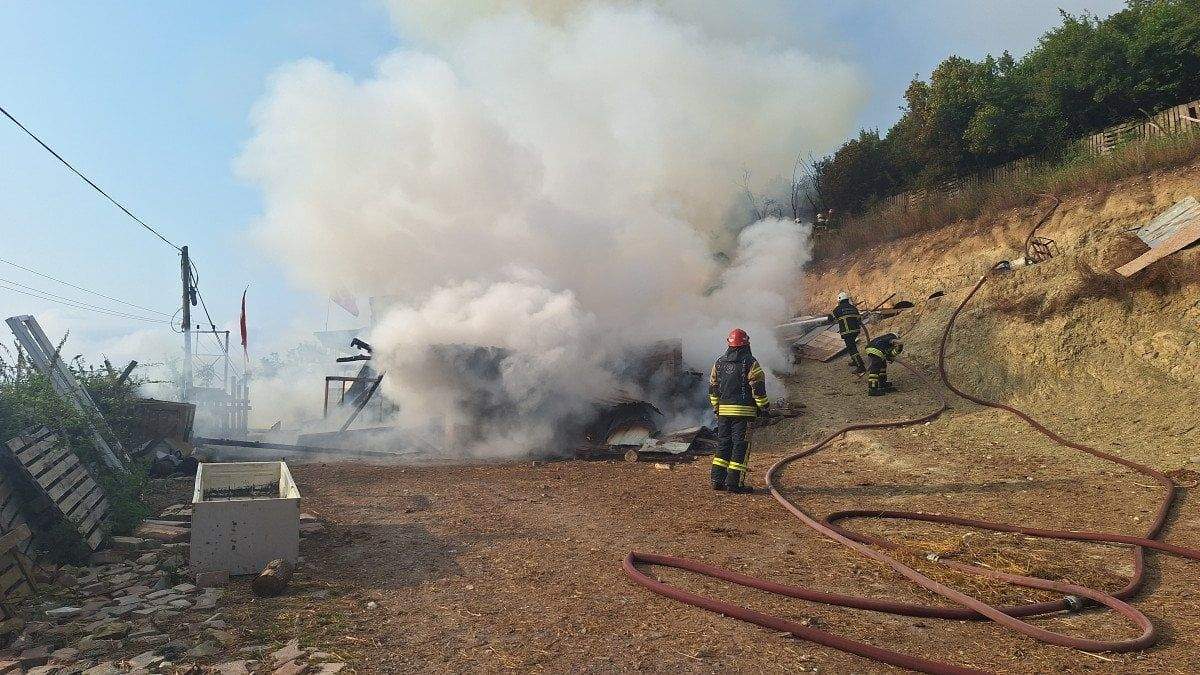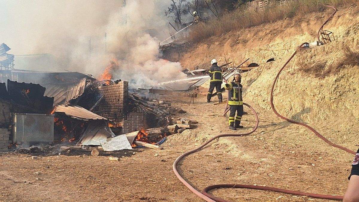 A.İ. ve ailesinin yaşadığı evin ahır kısmında, sabah saatlerinde henüz belirlenemeyen bir nedenle yangın çıkarken, alevler kısa sürede tüm ahıra sıçradı.