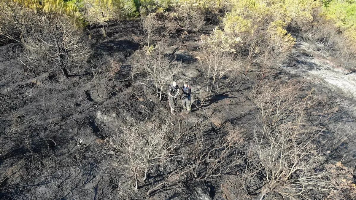 KOCAELİ’nin İzmit ilçesinde Kent Ormanında çıkan yangın, itfaiyenin yaklaşık 1 saatlik müdahalesiyle söndürüldü. Yanan alan dron ile görüntülendi.