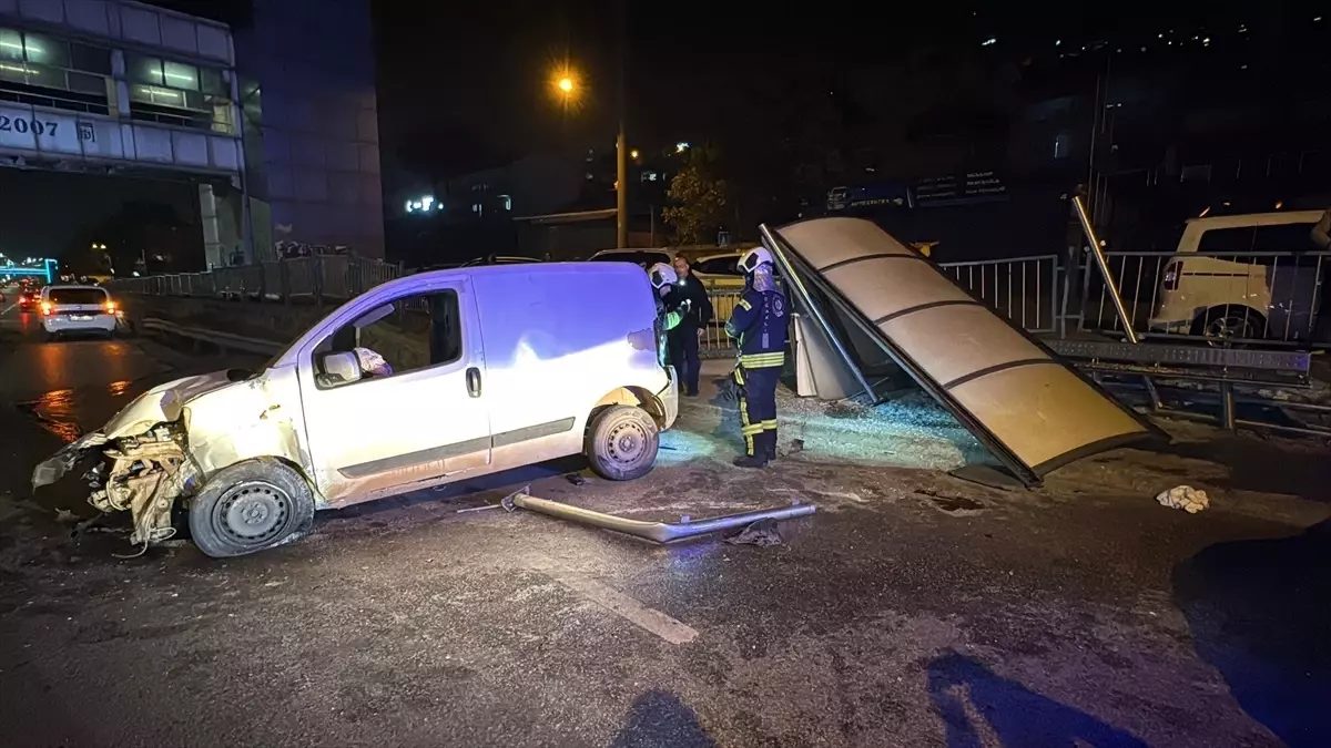 Kocaeli'nin İzmit ilçesinde otobüs durağına çarpan hafif ticari aracın sürücüsü ağır yaralandı.
