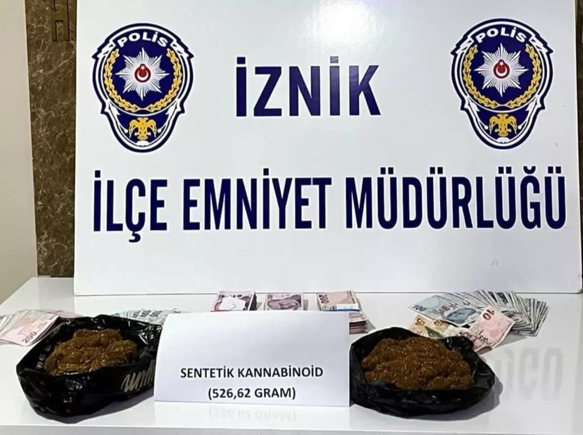 İznik İlçe Emniyet Müdürlüğü Asayiş Büro Amirliği ekipleri, uyuşturucu madde ticaretine karşı yürüttükleri çalışmalar kapsamında Yeşil Cami Mahallesi Küme Evleri civarında ardı ardına operasyonlar düzenledi. Yapılan baskınlarda M.T. ve S.İ.’nin evinde yapılan aramada 526 gram sentetik kannabinoid ve uyuşturucu satışından elde edildiği değerlendirilen 43 bin lira ele geçirildi. Gözaltına alınan şahıslar hakkında “uyuşturucu madde ticareti” suçundan işlem başlatıldı.