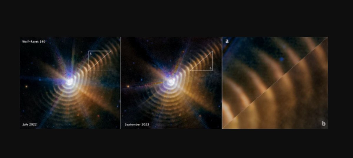 JWST, Cygnus takımyıldızında yaklaşık 5 bin ışık yılı uzaklıkta bulunan Wolf-Rayet 140 (WR 140) adlı ikili yıldız sistemini gözlemledi.