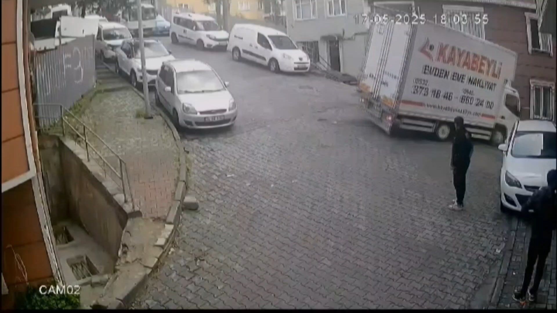 Olayda şans eseri yaralanan olmazken, kaza anı çevredeki bir güvenlik kamerası tarafından kaydedildi.