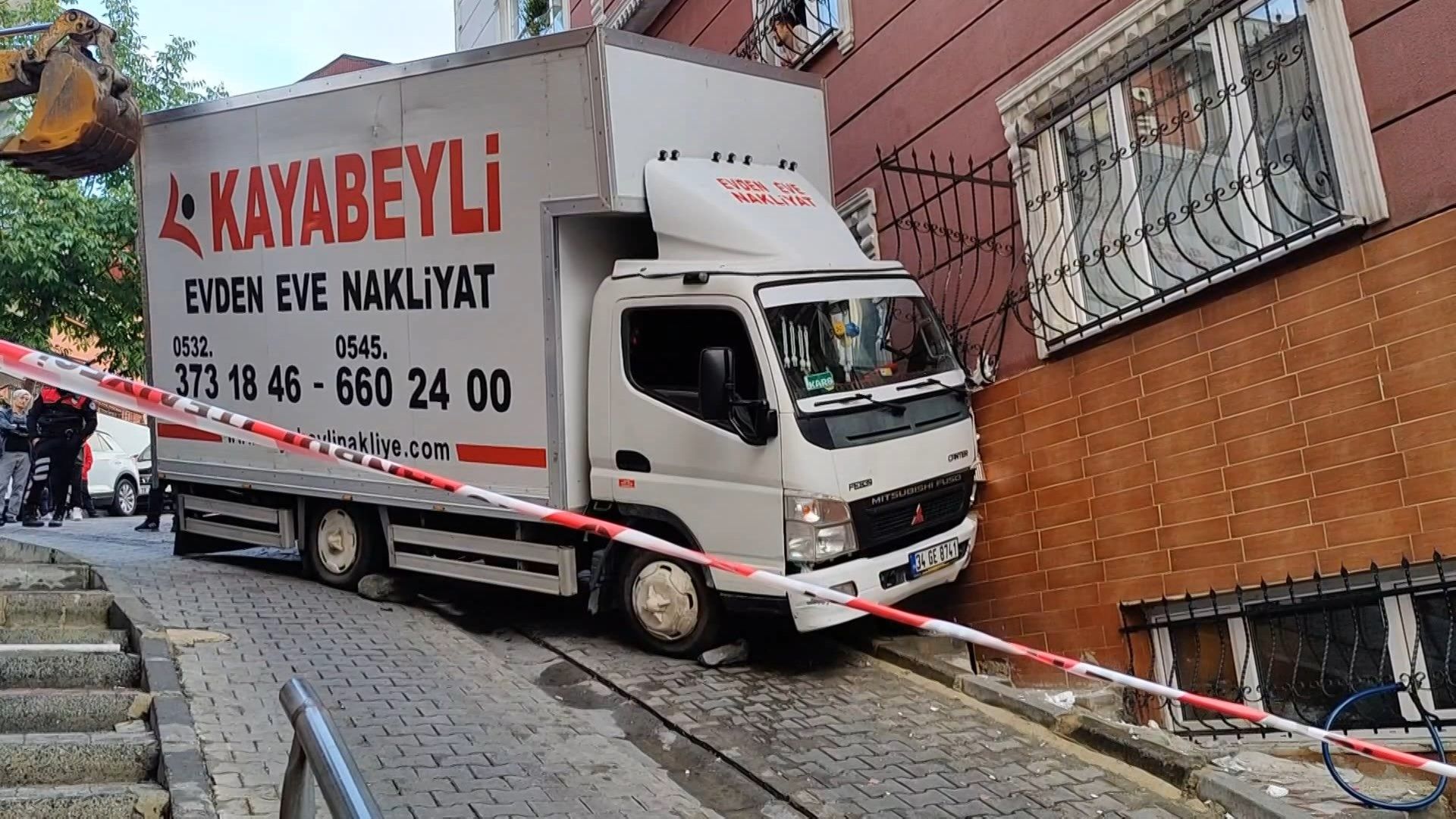 HABERLER Gündem Kağıthane’de nakliye kamyonu ev taşırken apartmana çarptı