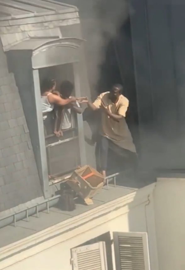 Fousseynou Cissé adlı 39 yaşındaki kapıcı, yangın sırasında apartmanın dış cephesindeki dar çıkıntıya çıkarak içerideki ailelere seslendi. Dumanlarla kaplı pencereden içerideki anne babalara ulaşan Cissé, çocukları tek tek aldı ve komşu binadaki bir kişiye uzattı.