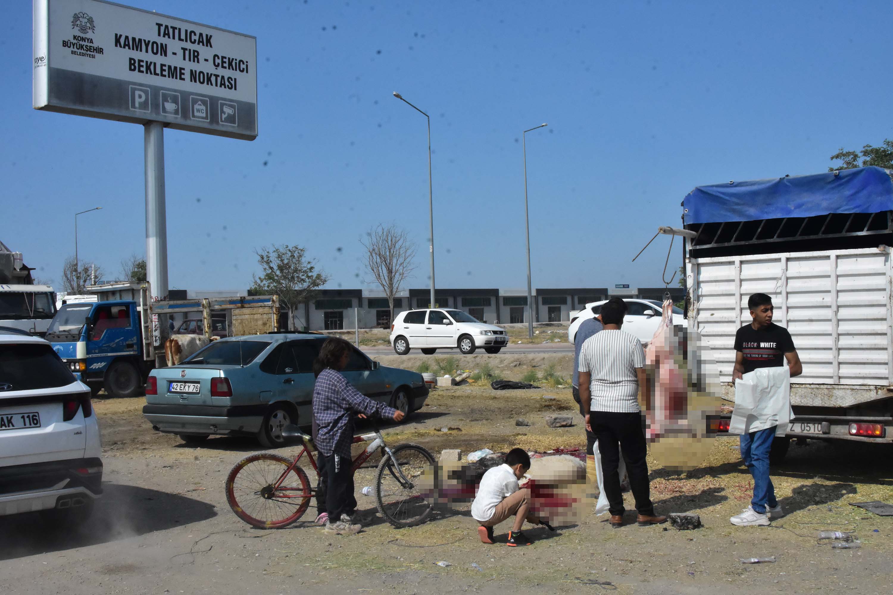 Konya‘nın Karatay ilçesinde tır ve kamyonların bekleme alanında izinsiz şekilde hayvan pazarı kuruldu.