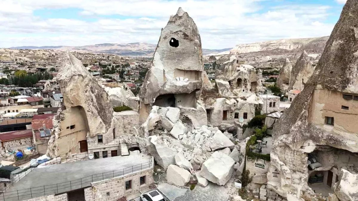 Sebebi henüz belirlenemeyen çökme sonucu, peribacasından kopan kaya kütleleri çevreye savruldu. Yaşanan olayda herhangi bir can kaybı ya da yaralanma meydana gelmedi.