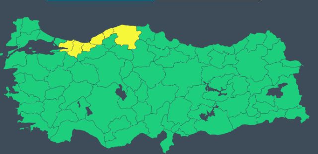 Meteoroloji’den Bartın, Düzce, Kocaeli, Kastamonu, Sakarya ve Zonguldak için ‘sarı’ kodlu uyarı yapıldı.