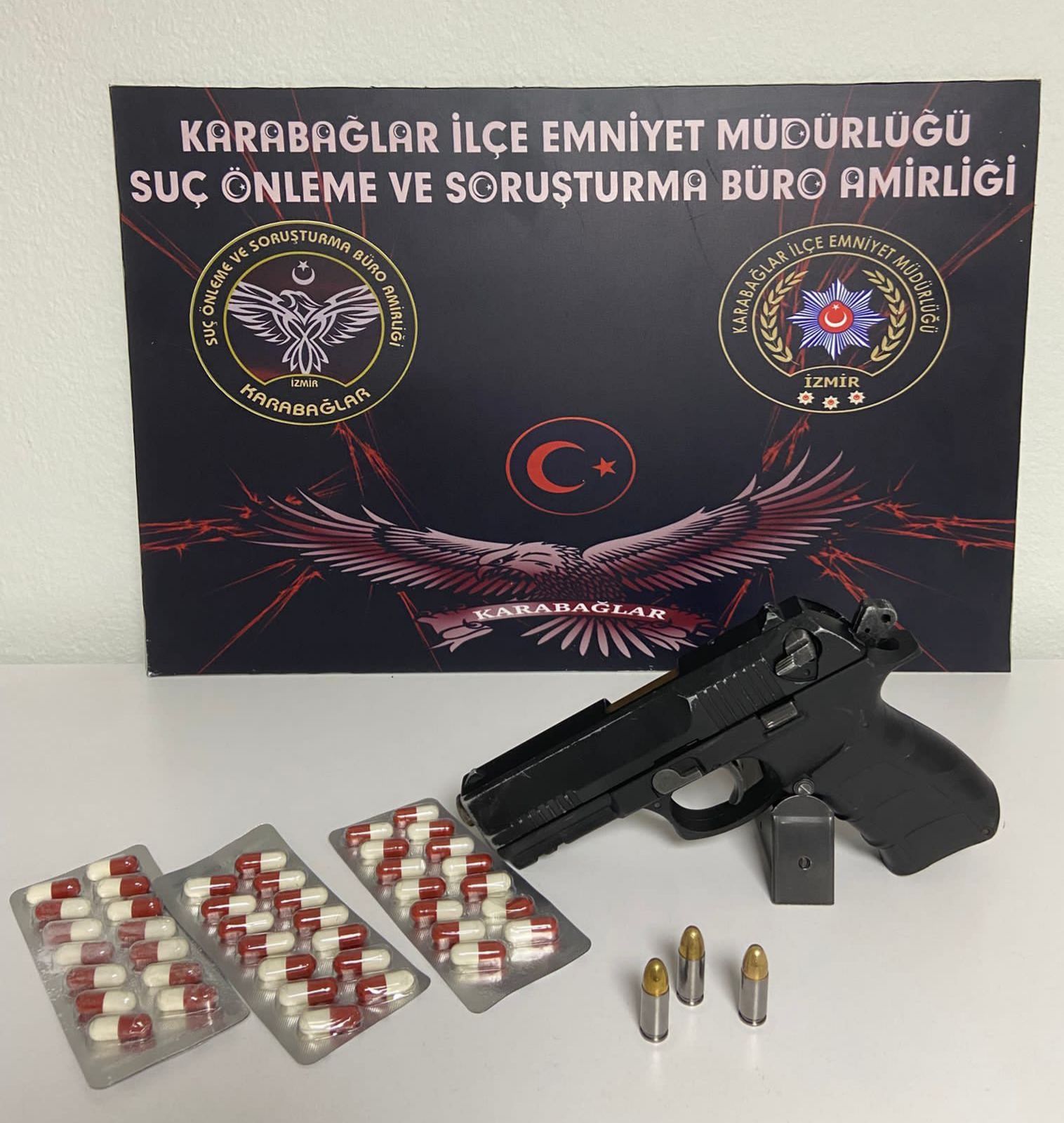 İzmir’in Karabağlar ilçesinde polis ekiplerinin dikkati, suçlulara bir kez daha göz açtırmadı. Karabağlar Suç Önleme ve Soruşturma Büro Amirliği’ne bağlı ekipler, yaptıkları rutin devriye sırasında durumundan şüphelendikleri bir şahsı durdurarak hem aranan bir hükümlüyü yakaladı hem de ruhsatsız silah ve uyuşturucu maddeleri ele geçirdi.
