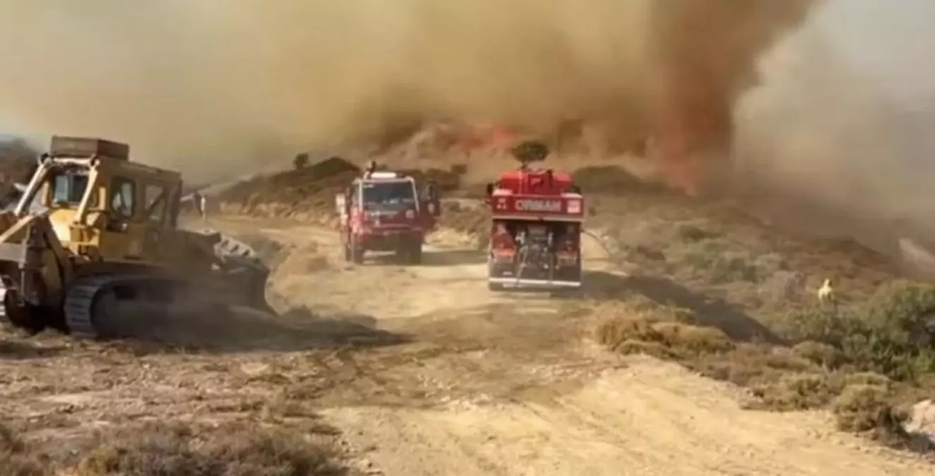 İZMİR’in Karaburun ilçesinde ormanlık ve makilik alanda yangın çıktı. Ekipler, alevlere havadan ve karadan müdahale ediyor.