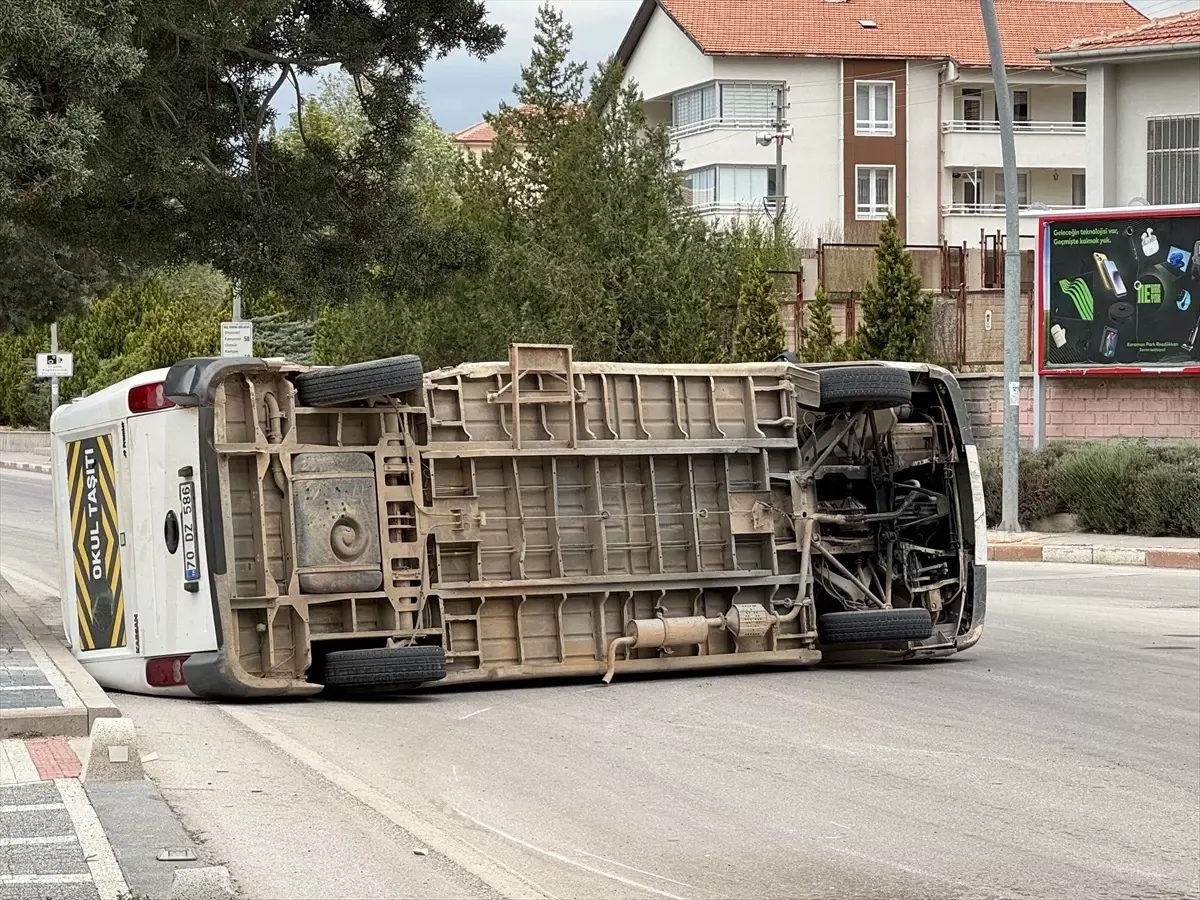 Özel eğitim öğrencilerini taşıyan Ü.E. idaresindeki 70 DZ 586 plakalı okul servis aracı, Yunuskent Mahallesi Valilik Kavşağı’nda Ö.B. yönetimindeki 33 AUD 983 plakalı kamyonetle çarpışarak devrildi.