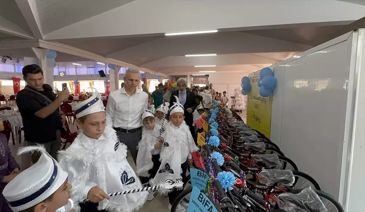 Burada 25 çocuğa Karaman Valisi Mehmet Fatih Çiçekli ve Konya Vakıflar Bölge Müdürü Yılmaz Kılınç tarafından bisiklet ve gram altın hediye edildi.