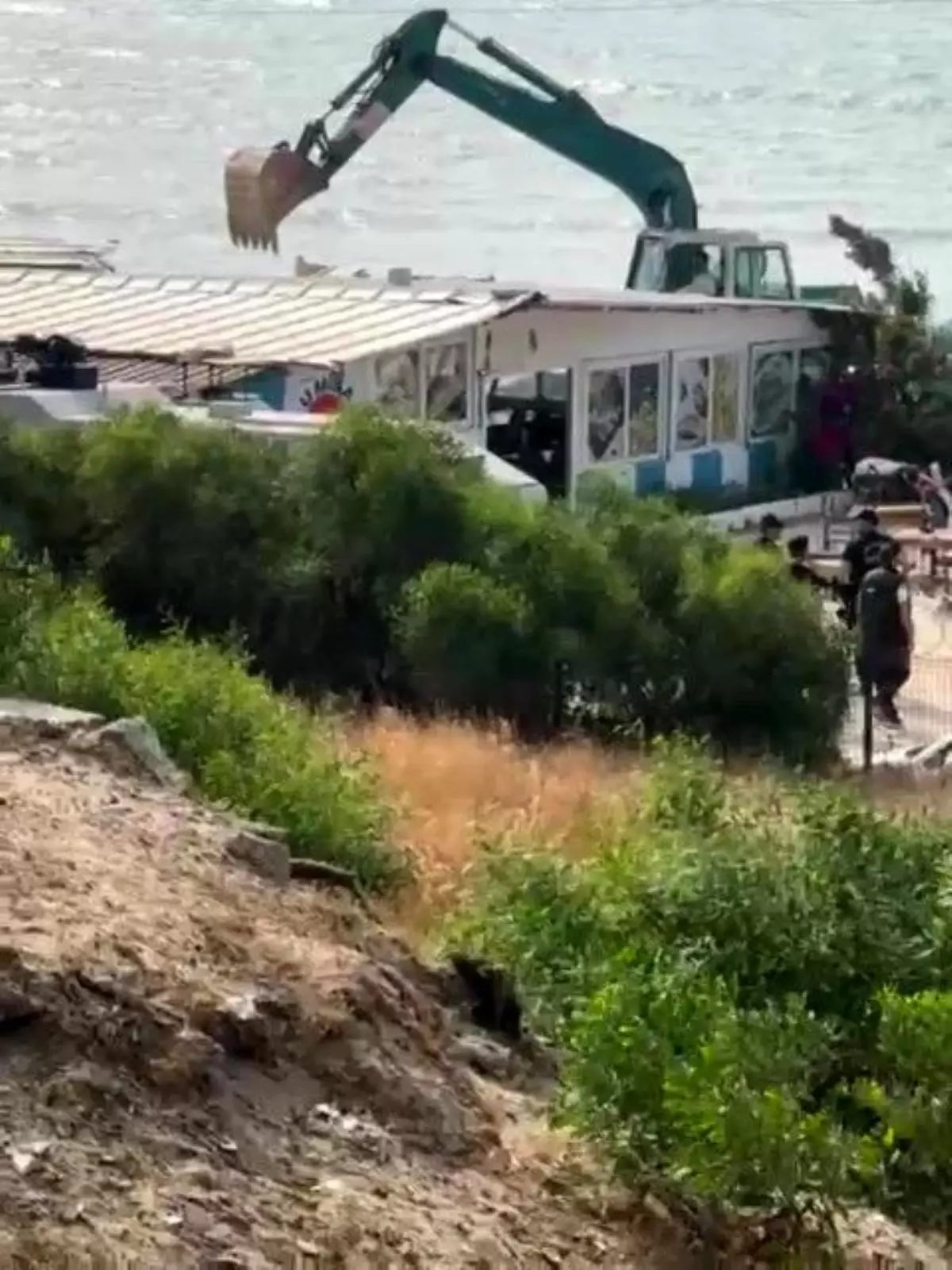 Adana’nın Karataş ilçesinde sahil kenarlarına yapılan baraka restoranlar yıkılmaya başlandı.