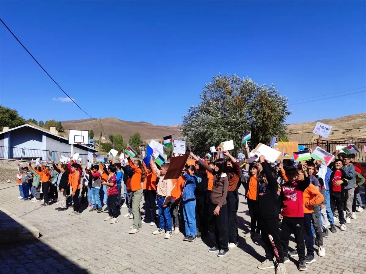 Erzurum’un Karayazı ilçesinde öğrenciler Filistin’e destek yürüyüşü düzenledi.