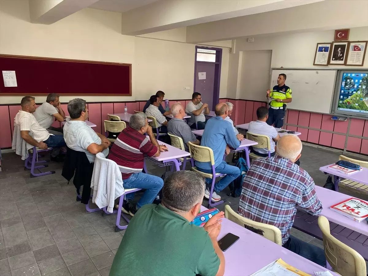 Atatürk Ortaokulu’nda düzenlenen seminerde, Jandarma Trafik ve İlçe Emniyet Müdürlüğü Trafik Tescil ve Denetleme Büro Amirliği görevlilerince servis sürücüleri, Okul Servis Araçları Hizmet Yönetmeliği, Karayolları Trafik Kanunu, yönetmelik kapsamında araçlarda bulundurulması gerekli olanlar, araçlarda nasıl hareket etmeleri gerektiği konularında bilgilendirildi.