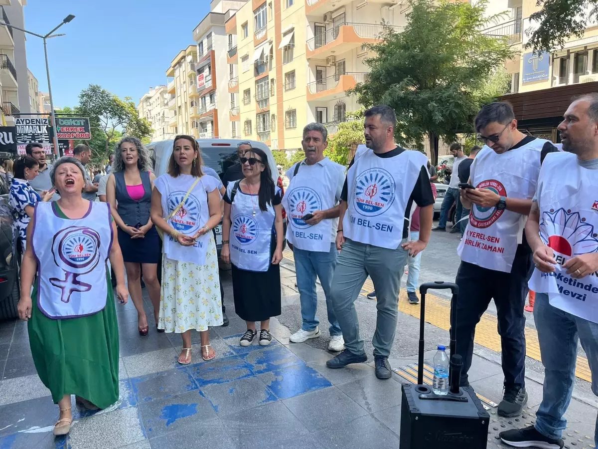 Karşıyaka Belediyesi'nde işçiler ve memurlar, maaş ve tazminat alacakları için iş bırakma eylemi yapıyor.