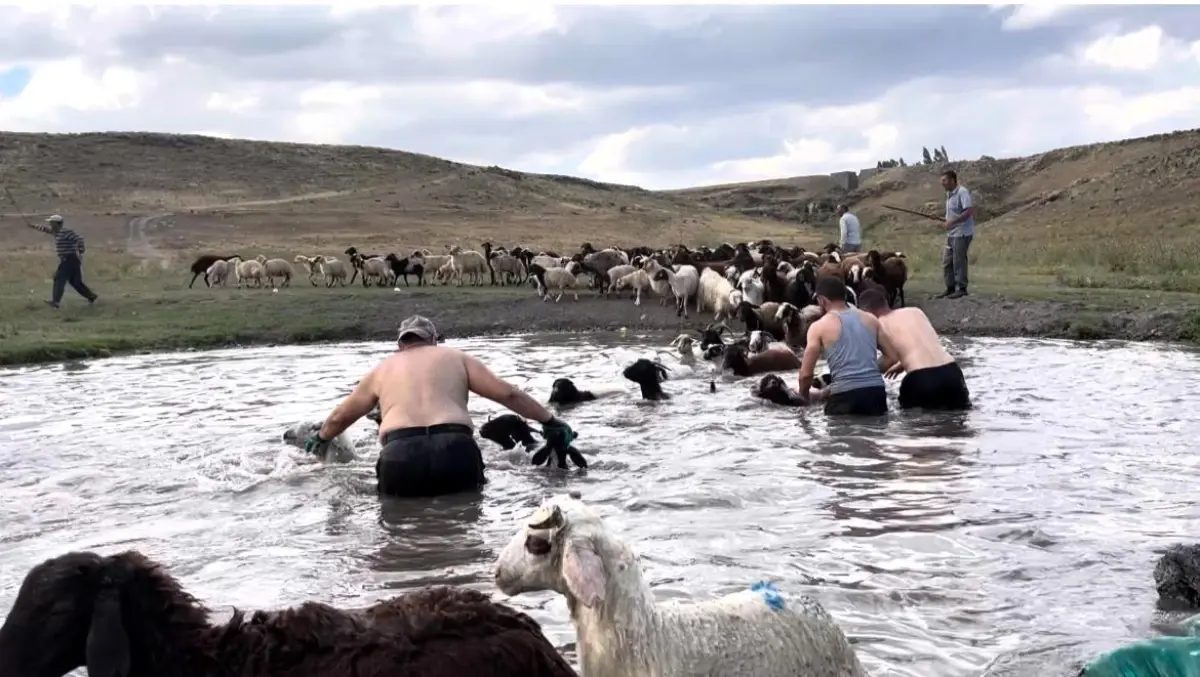 Son yılların en sıcak yazının yaşandığı Kars’ta sadece insanları değil, hayvanları da sıcak hava olumsuz etkiliyor. Köylüler, yaklaşık 400 koyunu serinletmek için dereye sokarak yüzdürdü.
