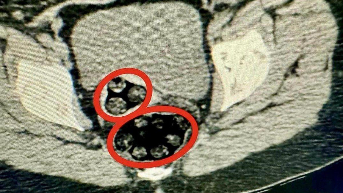 Kars Harakani Devlet Hastanesi’ne götürülen Yenkejeh’in çekilen röntgeninde, makatında uyuşturucu tespit edildi.