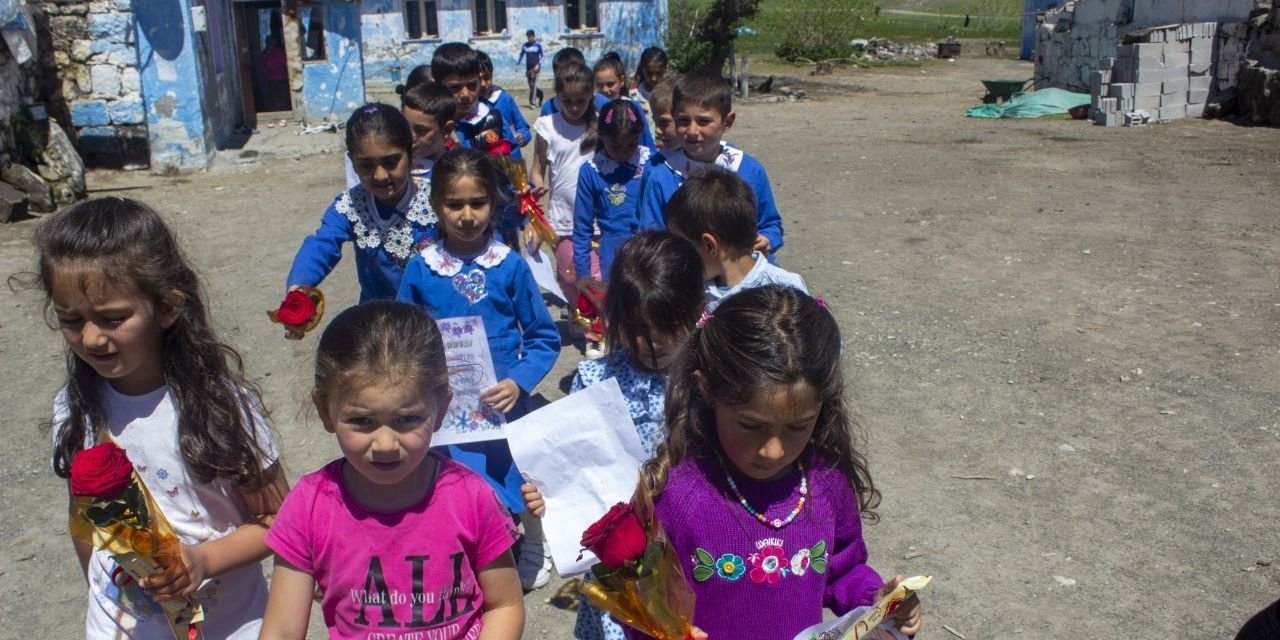 Kars’ın Akyaka ilçesinde ilkokul öğrencileri, Anneler Günü dolayısıyla çizdikleri resimler ile çiçekleri kapı kapı dolaşıp annelere hediye etti.