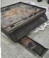 “Grill sehpası içinde bulunan ve D9 isimli solvent içeren endüstriyel yağlı yüzey temizleme malzemesi, toplama kabından yanarak akan yağlardan dolayı erimiştir. Bu erime, akışkan D9 malzemesinin yağla karışık olarak zeminde akmasını sağlamıştır. O çöp bidonuna ulaşan karışım yayılarak çöp bidonunu da yakmıştır.”