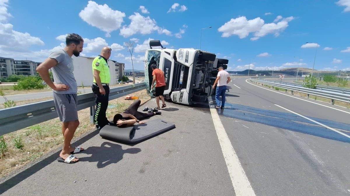 Kaza, saat 13.30 sıralarında Kuzey Marmara Otoyolu’ndan TEM Otoyolu Ankara istikametine bağlantı yolu Kartepe ilçesinde meydana geldi. Oğuzhan U. yönetimindeki 26 LD 120 çekici plakalı kağıt yüklü TIR, sürücüsünün kontrolünden çıkarak bariyerlere çarpıp emniyet şeridine devrildi. TIR sürücüsü yaralanırken, çevredeki sürücülerin ihbarıyla olay yerine polis, jandarma ve sağlık ekipleri sevk edildi. Sağlık ekipleri, sürücüyü ambulansla Kocaeli Şehir Hastanesi’ne kaldırdı. TIR sürücüsün hayati tehlikesinin olmadığı öğrenildi. Devrilen TIR’ın kaldırılması için çalışmalar sürerken, yolda ulaşım kontrollü olarak sağlanıyor. Kazayla ilgili soruşturma başlatıldı.