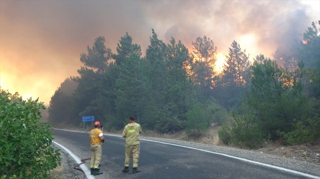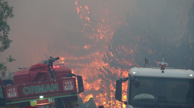 Havanın kararmasıyla havadan müdahaleye ara verildi. Yer ekipleri, yangını kontrol altına almak için çalışmalarına devam ediyor.