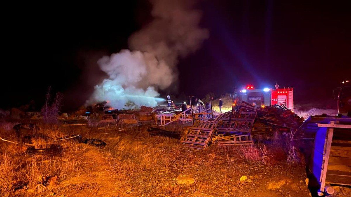Saman balyalarının bulunduğu alanda çıkan yangını fark eden köylüler, durumu 112 Acil Çağrı Merkezi’ne bildirdi.