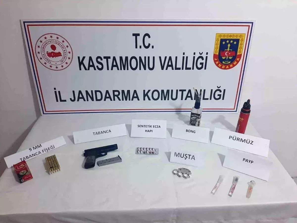 Edinilen bilgiye göre, Kastamonu İl Jandarma Komutanlığı ekiplerince uyuşturucu madde imal ve ticaretinin önlenmesine yönelik çalışmaları devam ediyor. Bu çalışmalar neticesinde Tosya ilçesinde ikamet eden H.Y.S. isimli şahsın ikametinde yapılan aramada kenevir bitkisi, 631 gram esrar ele geçirildi. Daday ilçesinde durdurulan araçta bulunan Ö.K. ve S.B. isimli şahısların üzerlerinde ve araçta yapılan aramalarda ise 1 adet ruhsatsız tabanca, 49 adet tabanca fişeği, sentetik ecza hapı ele geçirildi. Araç ilçesinde K.K., O.D. ve S.A. isimli şahısların bulunduğu araçta 58 gram metamfetamin, 1 adet ruhsatsız tabanca, sentetik ecza hapı ele geçirildi. Jandarma ekiplerince uyuşturucu ile yakalanan 6 şüpheli gözaltına alındı. Şahıslar işlemlerinin ardından adliyeye sevk edildi. – KASTAMONU