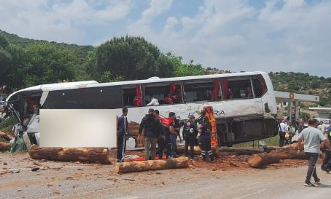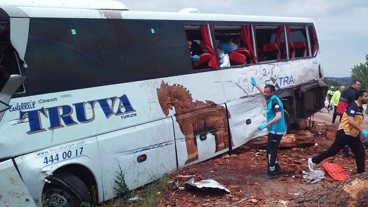 Çanakkale-Ezine kara yolunda, İstanbul’dan İzmir’e seyir halindeki Çanakkale Truva Turizm’e ait 17 AHT 624 plakalı yolcu otobüsü, 33 ANK 274 plakalı odun yüklü kamyon ve 34 DCJ 400 plakalı otomobil çarpıştı.