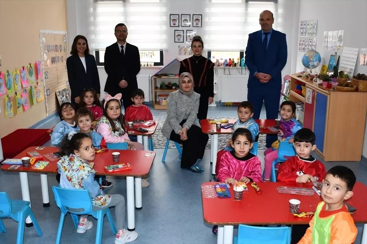 Anaokulu Müdürü Gökhan İlyas Er tarafından karşılanan Kaymakam Güneş, öğretmen ve öğrencilerle bir araya geldi.