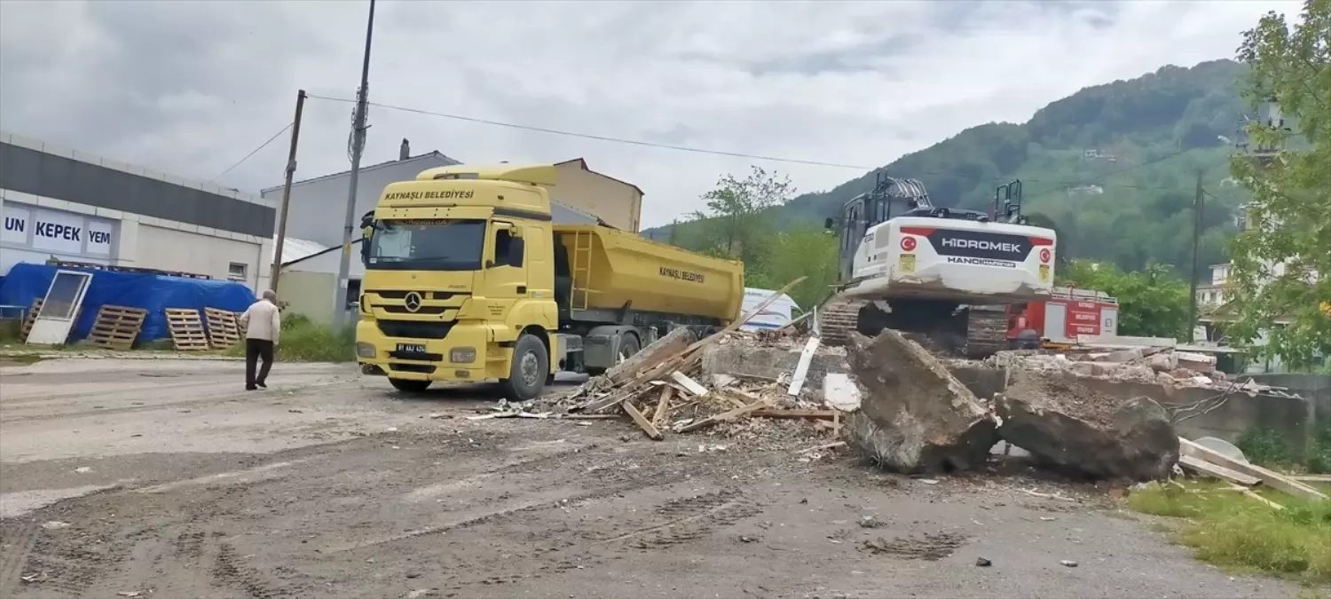 Kaynaşlı Belediyesi, 26 yıl önce 710 kişinin hayatını kaybettiği 7,2 büyüklüğündeki depremde zarar gören ilçede yıkılan iş yerlerinin yerine yapılan geçici işletme binaları için yıkım kararı aldı. Belediye ekipleri, iş makineleriyle yapıların yıkımına başladı.