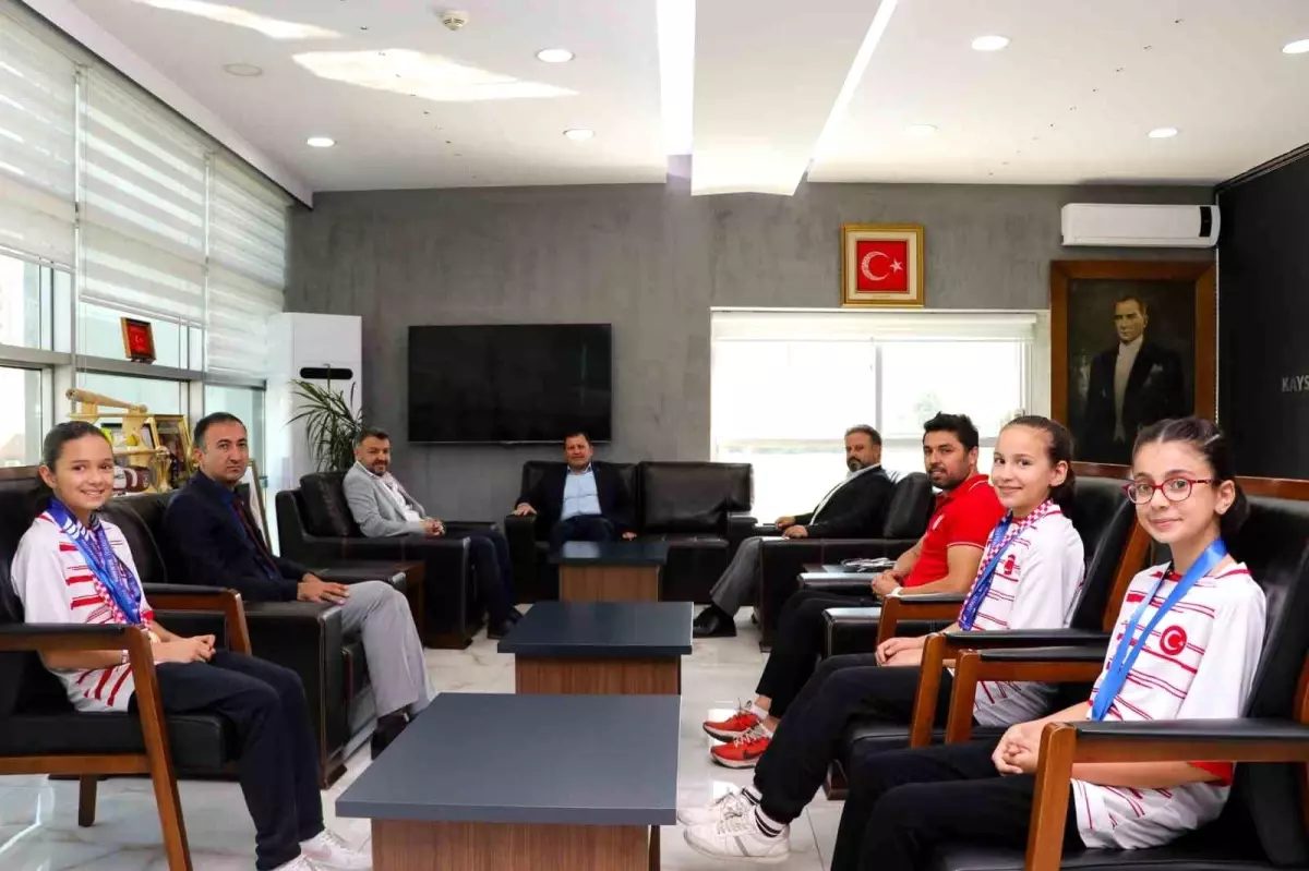 Sporcu ve antrenörler, Kayseri İl Müdürü'nü ziyaret edip uluslararası turnuvada başarılar elde etti.