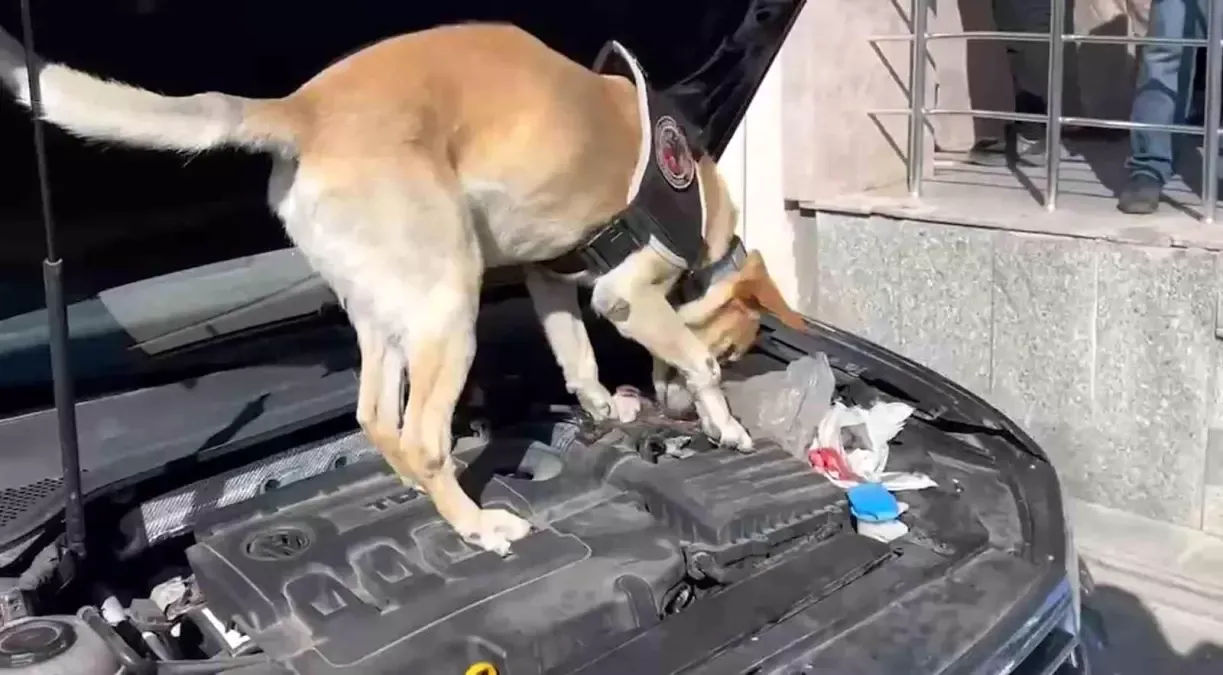 KAYSERİ’de, polisin durdurduğu otomobilin arka tamponuna gizlenmiş 12 kilo 600 gram skunk maddesini narkotik köpeği ‘Jack’ buldu, 4 kişi gözaltına alındı.