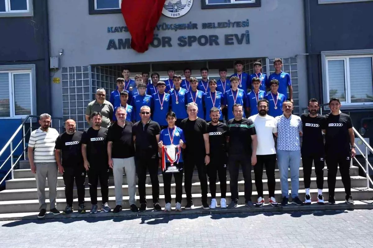 U-15 Türkiye Şampiyonu olan Talas Belediyespor’un büyük gurur yaşattığı ifade eden Başkan Mutlu Önal; “Talas Belediyespor U15 takımını tebrik ediyorum. İlimizi büyük bir gurur yaşattılar. 144 takımın içinden çıkarak Türkiye Şampiyonu oldular. Emek veren başkanları, yöneticileri, teknik heyetleri ve sporculara çok teşekkür ediyorum. Geleceğimizin gençlerine destek olmaya devam etmeliyiz ve onların neler başarabileceğine inanmalıyız” şeklinde konuştu. – KAYSERİ