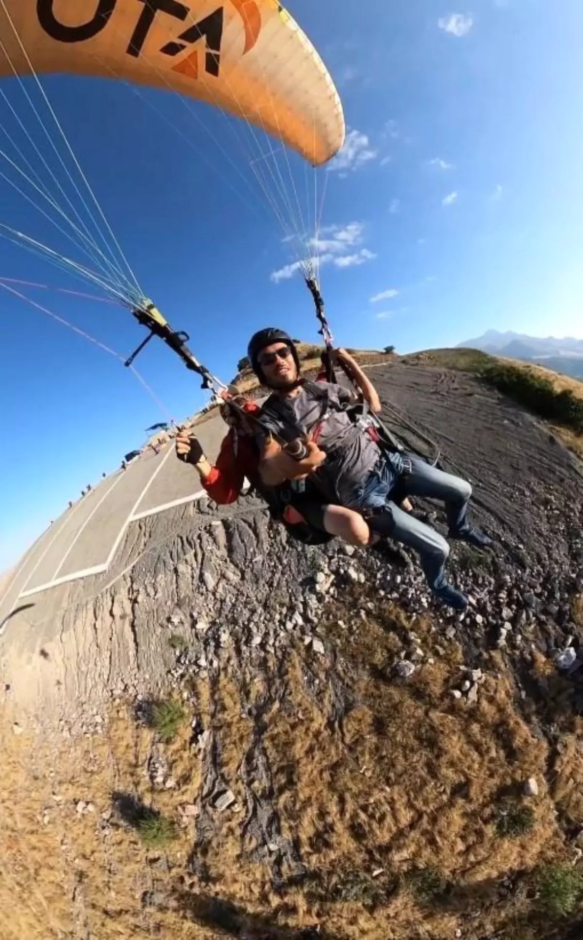 Edinilen bilgiye göre; Talas ilçesinde Ali Dağı’ndan havalanan pilot Emin Gürpınar yönetimindeki paraşütün sol kumanda ipi kalkıştan bir süre sonra düğümlendi. Yolcusuyla beraber havada sorunu tespit eden Gürpınar, sakinliğini koruyarak durumu yolcusuna anlattı. Düğümlenen ipi açmaya çalışmasına rağmen başarısız olan Gürpınar, kalkış yaptığı tepeye yeniden iniş yaptı.