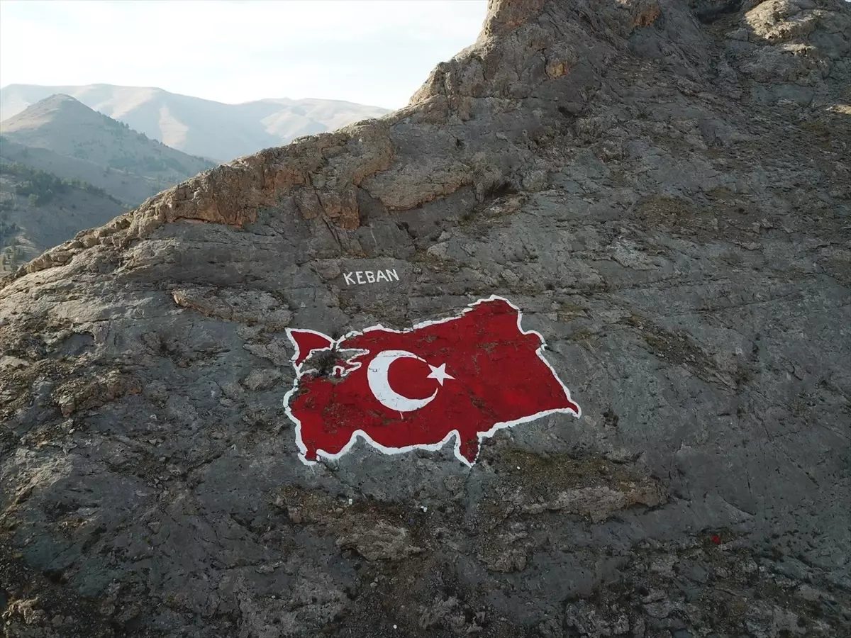 Elazığ’ın Keban ilçesinde kaya üzerine yapılan Türkiye haritası boyanarak yenilendi.