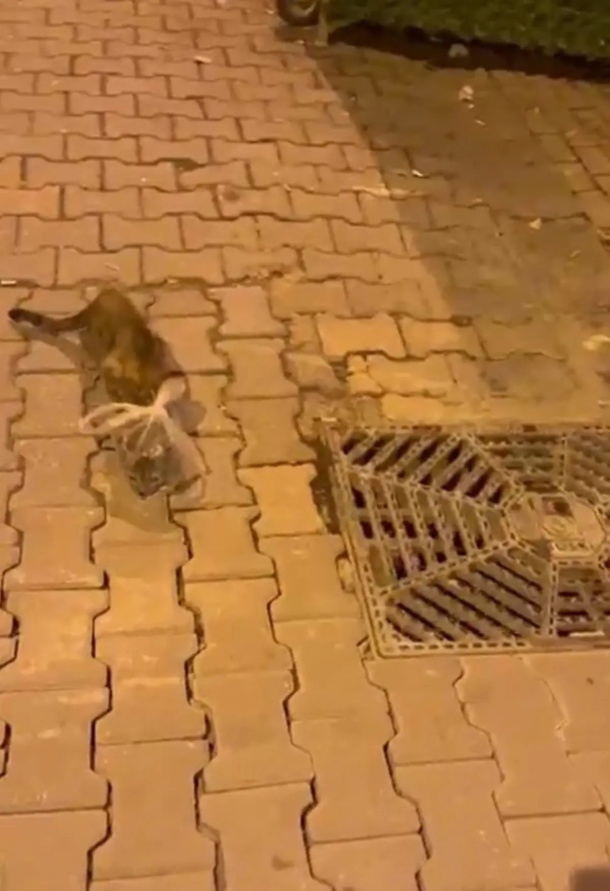 Balıkpazarı Mahallesi’nde bir esnaf sokakta yürürken başına poşet geçirilmiş kedi gördü. Poşet bağlandığı için çıkaramayan kedinin güçlükle yürüyüp, yönünü bulmaya çalıştı. Durumu fark eden bir esnaf, korkup kaçmaya çalışan kediyi yakalayıp, başındaki poşeti çıkardı. Kediyi iş yerine getiren esnaf, yaşananları cep telefonu kamerasıyla görüntüledi.