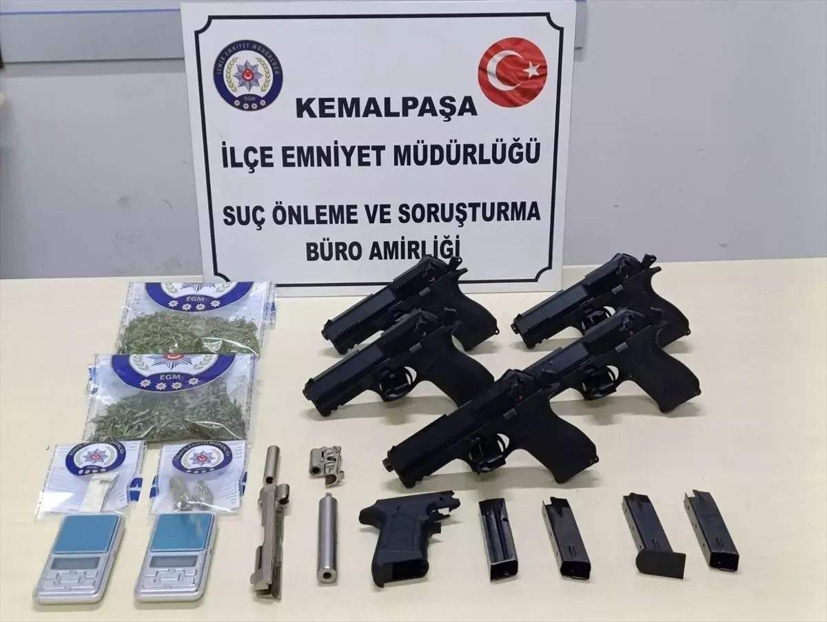 Kemalpaşa İlçe Emniyet Müdürlüğüne bağlı Suç Önleme ve Soruşturma Büro Amirliği ekipleri, ilçeye ruhsatsız tabanca ve uyuşturucu madde getirileceği bilgisi üzerine çalışma başlattı.