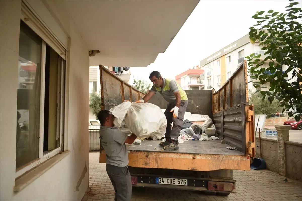 Temizlik İşleri Müdürlüğüne bağlı işçiler tarafından evden küflenmiş ve böceklenmiş yiyecekler, kullanılmaz hale gelmiş eşyalar, plastik ürünler, yıllardır açılmayan bir buzdolabının da aralarında yer aldığı bir kamyon çöp çıkarıldı.