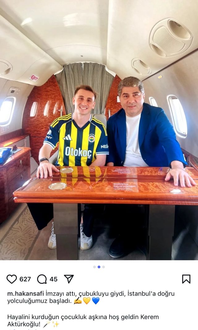 Fenerbahçe Yönetim Kurulu Üyesi Hakan Safi, uçaktan çarpıcı bir paylaşıma imza atarak “İmzayı attı, çubukluyu giydi, İstanbul’a doğru yolculuğumuz başladı. Hayalini kurduğun çocukluk aşkına hoş geldin Kerem Aktürkoğlu!’ dedi. Bu sözler kısa süre içerisinde gündem oldu.