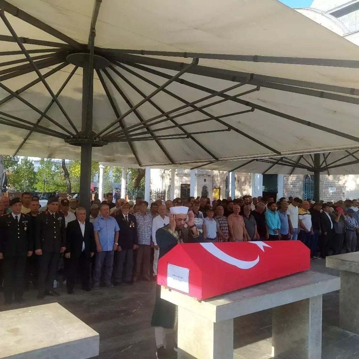Gazi Güneş’in Türk bayrağına sarılı tabutunu askeri personel törenle musalla taşına yerleştirmesi sonrası ikindi namazı sonrası cenaze namazı kılındı.