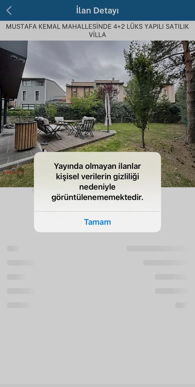 İlana girildiğinde “Yayında olmayan ilanlar verilerin gizliliği nedeniyle görüntülenememektedir” mesajı görülüyor.
